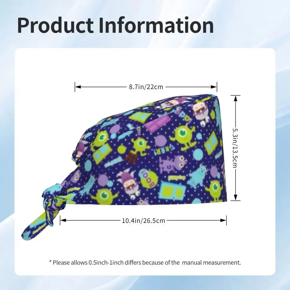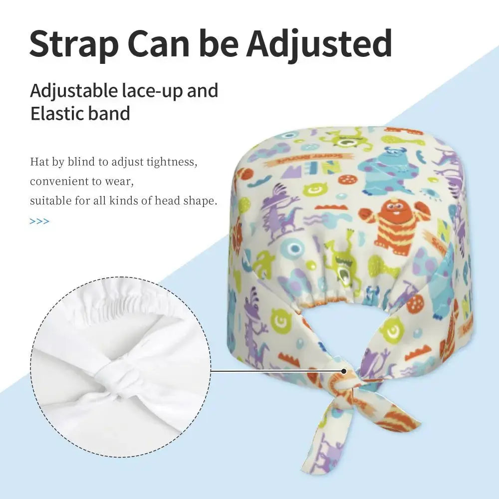 The Adjustable "MonsterMoxie Pro" Surgical Cap by MINISO (Working Cap model, origin mainland China, Fujian) is designed for unisex adults like you - nurses, doctors, surgeons or healthcare personnel - who are looking for a touch of whimsy without compromising functionality.