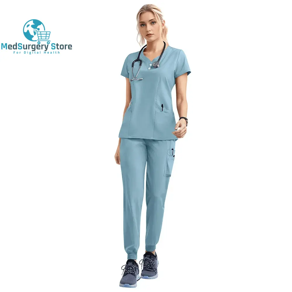 Imagine wearing a uniform that makes you feel fluid, powerful and ready to conquer intense shifts in the operating room or hospital, where every movement counts for the well-being of your patients. The VitalFlow Elite Scrub Jogger Women's Scrub Jogger Set is designed for heroic doctors and nurses like you: a premium set with stretch jogger pants that offer jogger-style comfort without compromising professionalism, made of breathable, durable fabric that wicks moisture, maintains freshness and resists multiple disinfections, eliminating the discomfort of stiff scrubs that limit your agility during surgeries or long rounds.